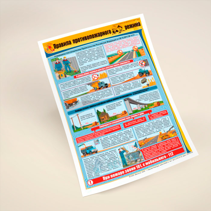 Плакат «Правила противопожарного режима» разработан в соответствии с изменениями в Правилах противопожарного режима в РФ, утвержденными постановлением Правительства РФ 30.12.2017 № 1717