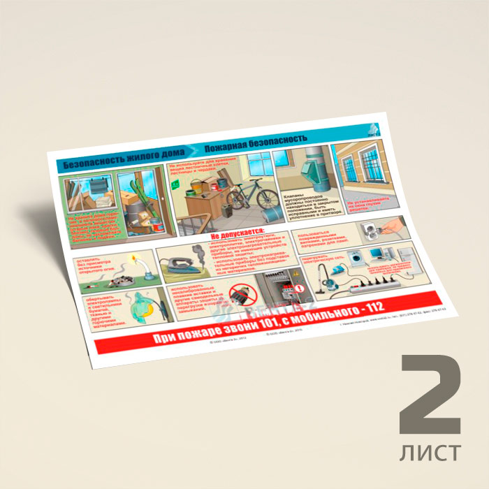 Комплект плакатов «Безопасность жилого дома» из 3 листов может быть изготовлен любого формата и размера, на бумаге, самоклеящейся пленке, пластике, баннерной ткани и металле. Разрабатываем, рисуем и изготавливаем плакаты на любую интересующую Вас тематику