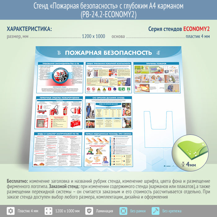 Стенд «Пожарная безопасность» с глубоким А4 карманом (PB-24.2-ECONOMY2)