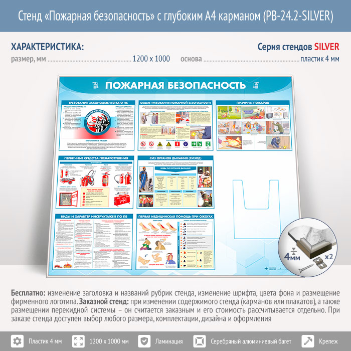 Стенд «Пожарная безопасность» с глубоким А4 карманом (PB-24.2-SILVER)