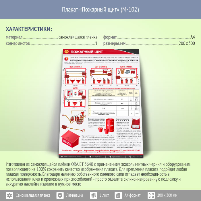 Плакат «Пожарный щит» (М-102, самоклеящаяся пленка, А4, 1 лист)