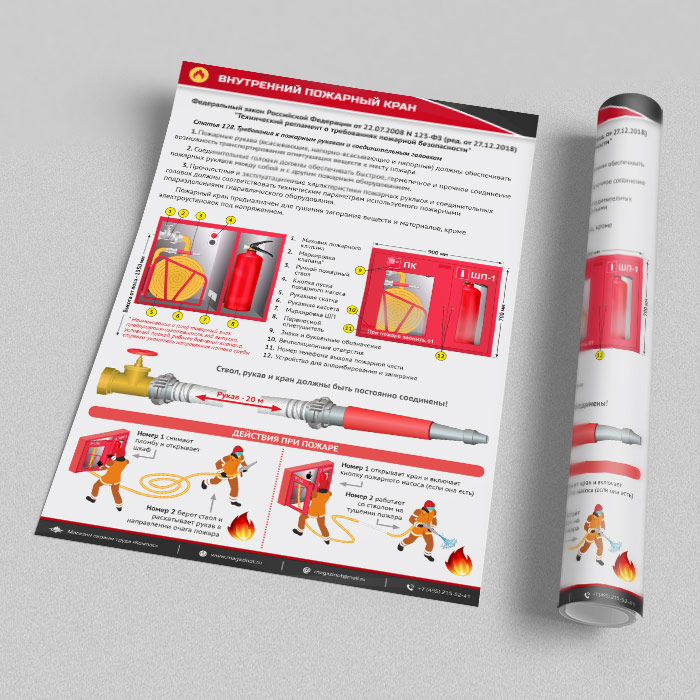 Плакат «Внутренний пожарный кран» может быть изготовлен любого формата и размера, на бумаге, самоклеящейся пленке, пластике, баннерной ткани и металле. Разрабатываем, рисуем и изготавливаем плакаты на любую интересующую Вас тематику