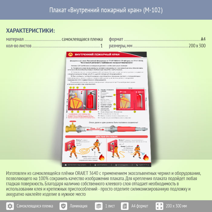 Плакат «Внутренний пожарный кран» (М-103, самоклеящаяся пленка, А4, 1 лист)