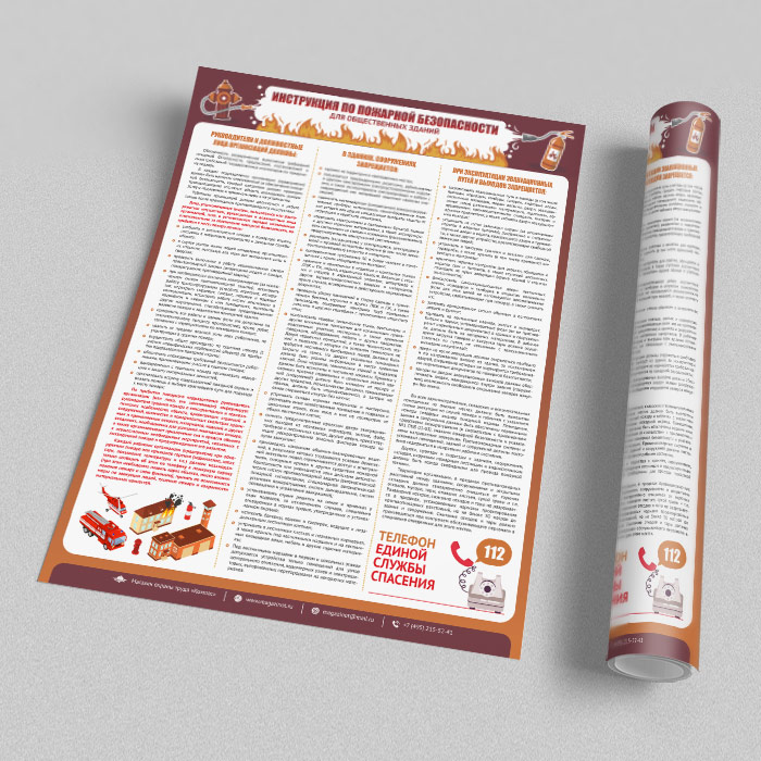 Плакат «Инструкция по пожарной безопасности для общественных зданий» может быть изготовлен любого формата и размера, на бумаге, самоклеящейся пленке, пластике, баннерной ткани и металле. Разрабатываем, рисуем и изготавливаем плакаты на любую интересующую Вас тематику