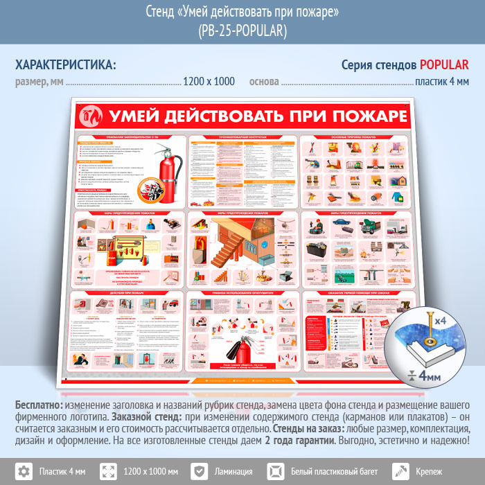 Стенд «Умей действовать при пожаре» (PB-25-POPULAR)