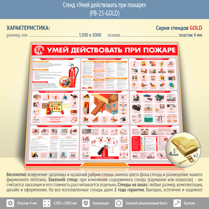 Стенд «Умей действовать при пожаре» (PB-25-GOLD)