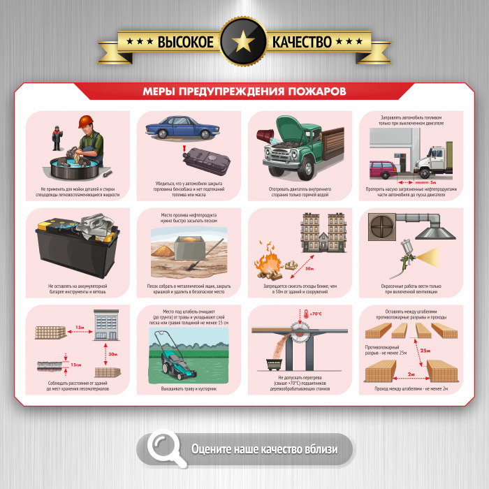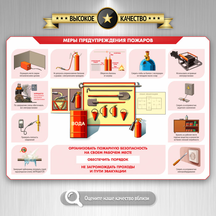 Стенды по пожарной безопасности помогают изучить правильные методы работы с первичными средствами пожаротушения и регламентируют действия в случае возникновения пожара