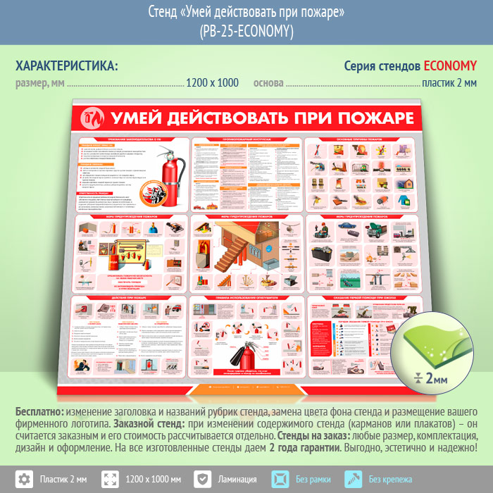 Стенд «Умей действовать при пожаре» (PB-25-ECONOMY)