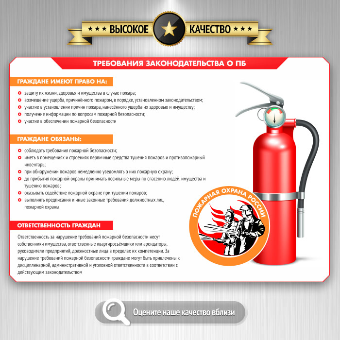 Стенды по пожарной безопасности помогают изучить правильные методы работы с первичными средствами пожаротушения и регламентируют действия в случае возникновения пожара