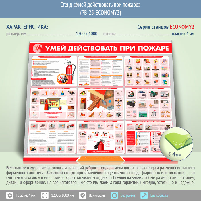Стенд «Умей действовать при пожаре» (PB-25-ECONOMY2)
