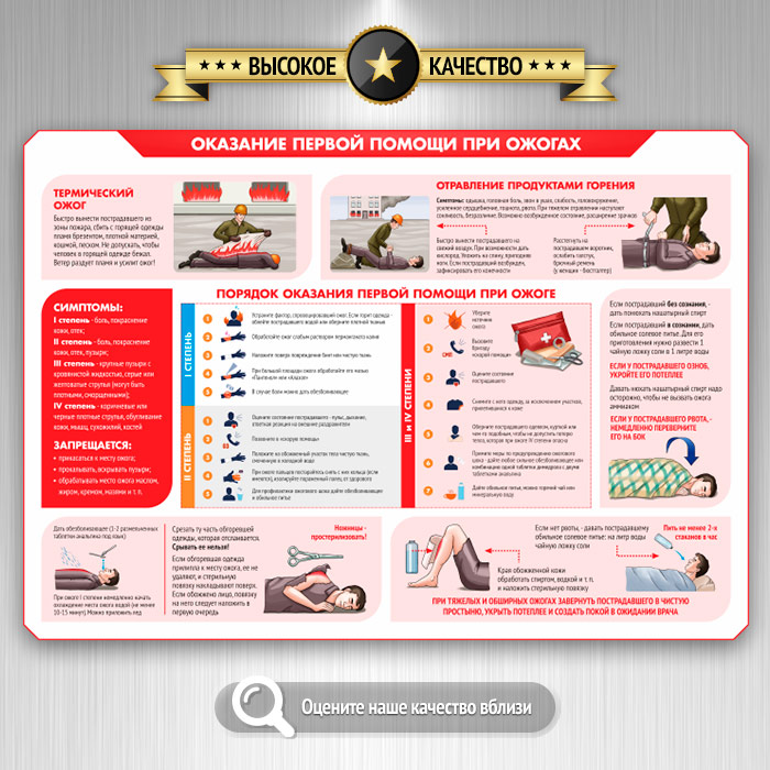 Стенд «Умей действовать при пожаре» содержит самые важные аспекты пожарной безопасности. Чисто теоретических плакатов здесь всего 2 - «Требования законодательства о ПБ» и «Противопожарный инструктаж». Все же остальные - максимально практичные и наглядно объясняют причины пожаров, как их не допустить и что делать, если пожар все же произошел. Также подробно освещена тема оказания первой помощи при ожогах разной степени тяжести. Как всегда, только актуальная информация, качественные иллюстрации и современный дизайн!
