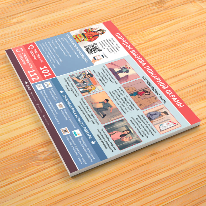 Плакат «Порядок вызова пожарной охраны» с QR может быть изготовлен любого формата и размера, на бумаге, самоклеящейся пленке, пластике, баннерной ткани и металле. Разрабатываем, рисуем и изготавливаем плакаты на любую интересующую Вас тематику