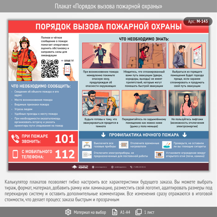 Плакат «Порядок вызова пожарной охраны» с QR (М-143, 1 лист)