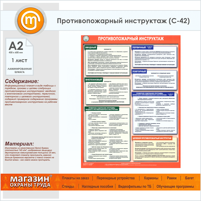 Плакат «Противопожарный инструктаж» (С-42, ламинированная бумага, А2, 1 лист)