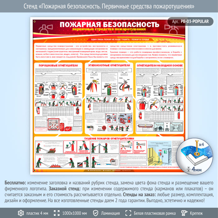 Стенд «Пожарная безопасность. Первичные средства пожаротушения» (PB-03-POPULAR)