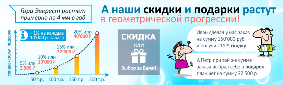 Скидки и подарки растут в геометрической прогрессии: больше заказ - больше выгоды!