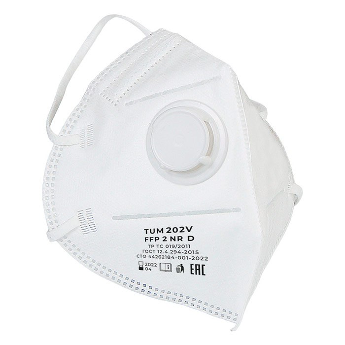 Респиратор противоаэрозольный TUM 202V (FFP2) с клапаном, к-т 10 шт – незаменимое средство индивидуальной защиты для тех, кто работает в условиях повышенной опасности для органов дыхания. Маска легко надевается и снимается, при этом обеспечивает надёжную защиту от пыли, различных вредных примесей и мелкодисперсных частиц в воздухе, а также вирусов. Благодаря особой конструкции с носовым зажимом и обтюратором, респиратор плотно прилегает к лицу, исключая попадание загрязнённого воздуха.