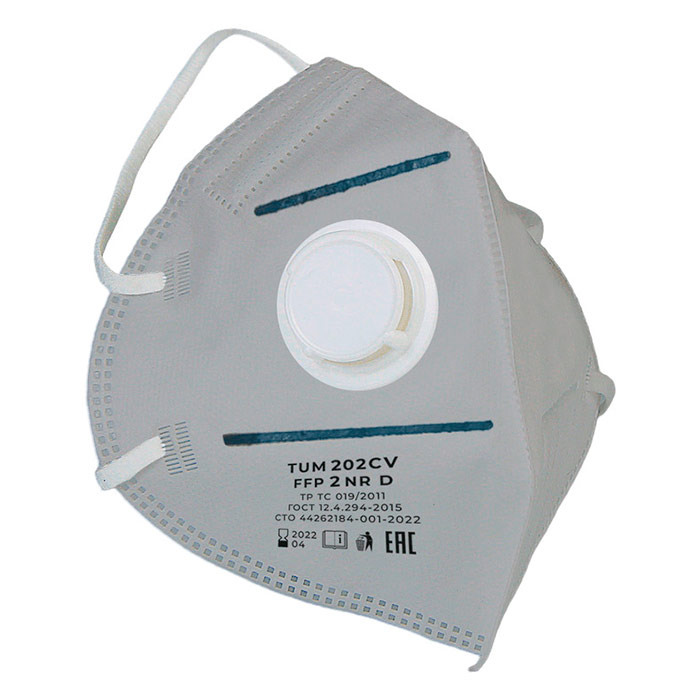 Респиратор противоаэрозольный TUM 202СV (FFP2) с клапаном и угольным слоем, к-т 10 шт – незаменимое средство индивидуальной защиты для тех, кто работает в условиях повышенной опасности для органов дыхания. Маска легко надевается и снимается, при этом обеспечивает надёжную защиту от пыли, различных вредных примесей и мелкодисперсных частиц в воздухе, а также вирусов. Благодаря особой конструкции с носовым зажимом и обтюратором, респиратор плотно прилегает к лицу, исключая попадание загрязнённого воздуха.