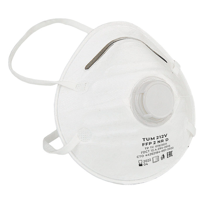 Респиратор противоаэрозольный TUM 212V (FFP2) с клапаном, к-т 10 шт – незаменимое средство индивидуальной защиты для тех, кто работает в условиях повышенной опасности для органов дыхания. Маска легко надевается и снимается, при этом обеспечивает надёжную защиту от пыли, различных вредных примесей и мелкодисперсных частиц в воздухе, а также вирусов. Благодаря особой конструкции с носовым зажимом и обтюратором, респиратор плотно прилегает к лицу, исключая попадание загрязнённого воздуха.