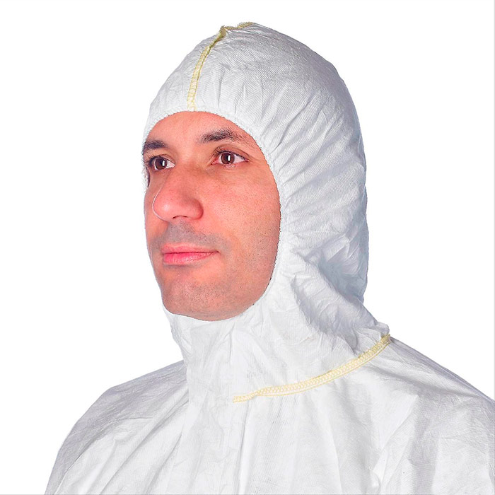 Капюшон из двух деталей. Эластичные манжеты по краю капюшона, на запястьях и щиколотках; резинка на талии. Материал Easysafe – новый уникальный оптимизированный полиэтиленовый нетканый материал от компании DuPont. Более мягкий и с более открытой структурой, чем Tyvek® (L1431N), он обладает меньшими защитными свойствами, однако обеспечивает адекватную защиту по типу 5 и 6, оставаясь при этом проницаемым для воздуха и водяных паров