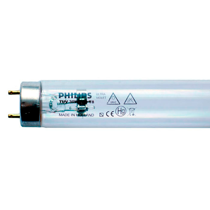 Светильник с лампой Philips TUV 30W предназначен для создания недорогого ультрафиолетового бактерицидного облучателя без регистрационного удостоверения Минздрава РФ открытого типа (облучение только в отсутствии людей). Встроенное в корпус, компактное электронное ПРА, положительно сказывается на сроке службы лампы