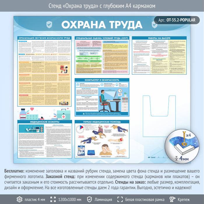 Стенд «Охрана труда» с глубоким А4 карманом (OT-35.2)
