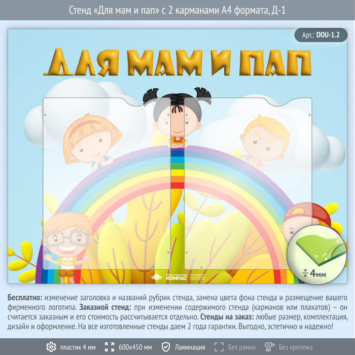Стенд «Для мам и пап» с 2 карманами А4 формата (DOU-1.2)