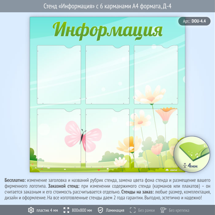 Стенд «Информация» с 6 карманами А4 формата (DOU-4.4)