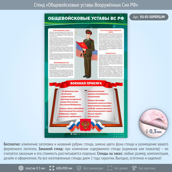 Стенд «Общевойсковые уставы Вооружённых Сил РФ» (VU-05-SUPERSLIM)