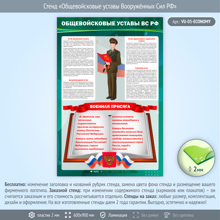 Стенд «Общевойсковые уставы Вооружённых Сил РФ» (VU-05-ECONOMY)