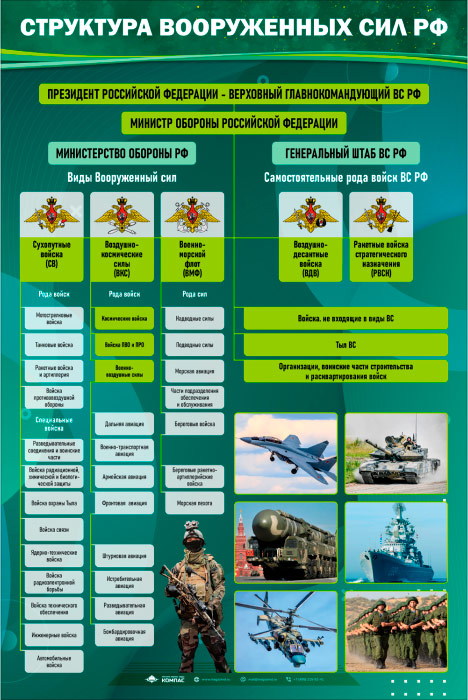 Стенд «Структура Вооружённых Сил РФ» (VU-08) содержит структуру Вооруженных сил РФ.