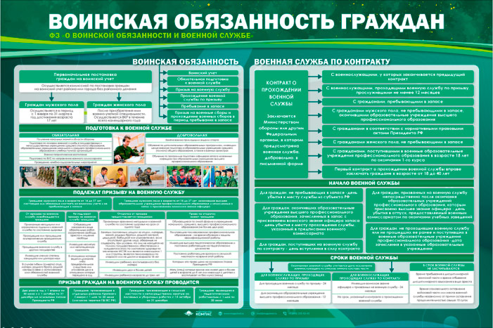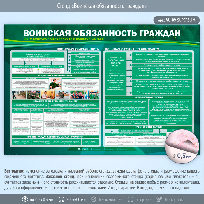 Стенд «Воинская обязанность граждан» (VU-09) содержит выжимку из ФЗ "О воинской обязанности и военной службе".