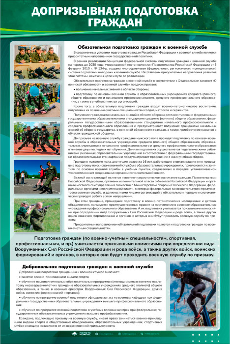 Стенд «Допризывная подготовка граждан» (VU-10) содержит информацию о допризыной подготовке граждан (как обязательной, так и добровольной).
