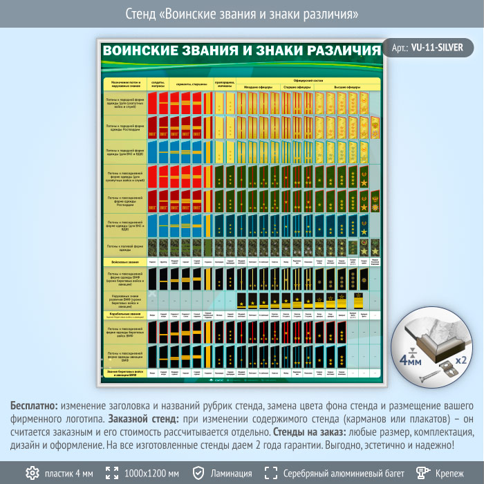 Стенд «Воинские звания и знаки различия» (VU-11-SILVER)