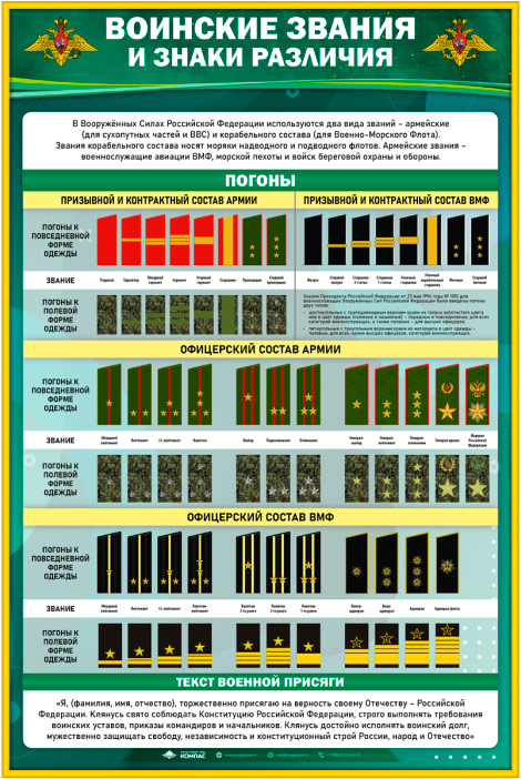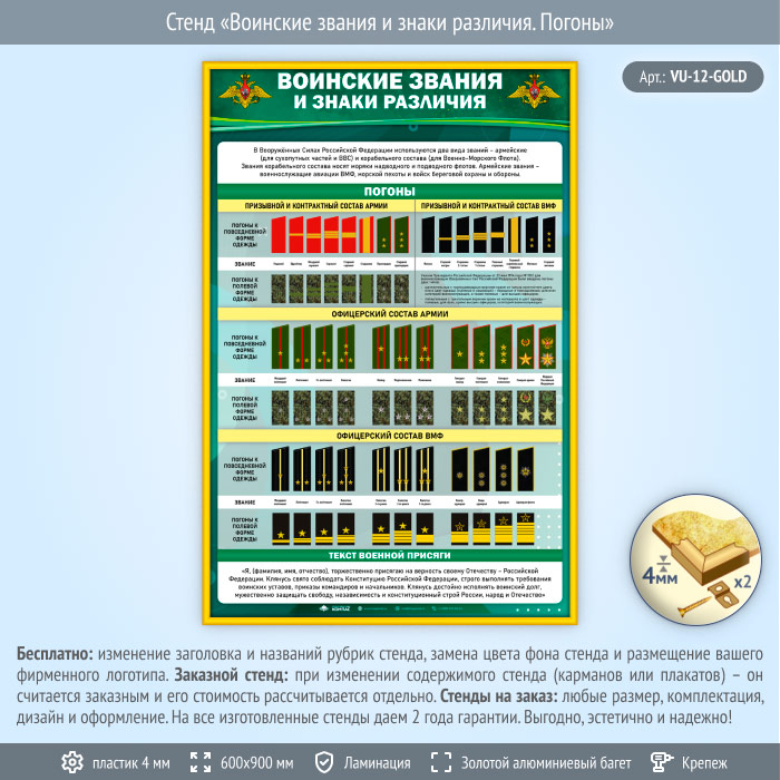 Стенд «Воинские звания и знаки различия. Погоны» (VU-12-GOLD)