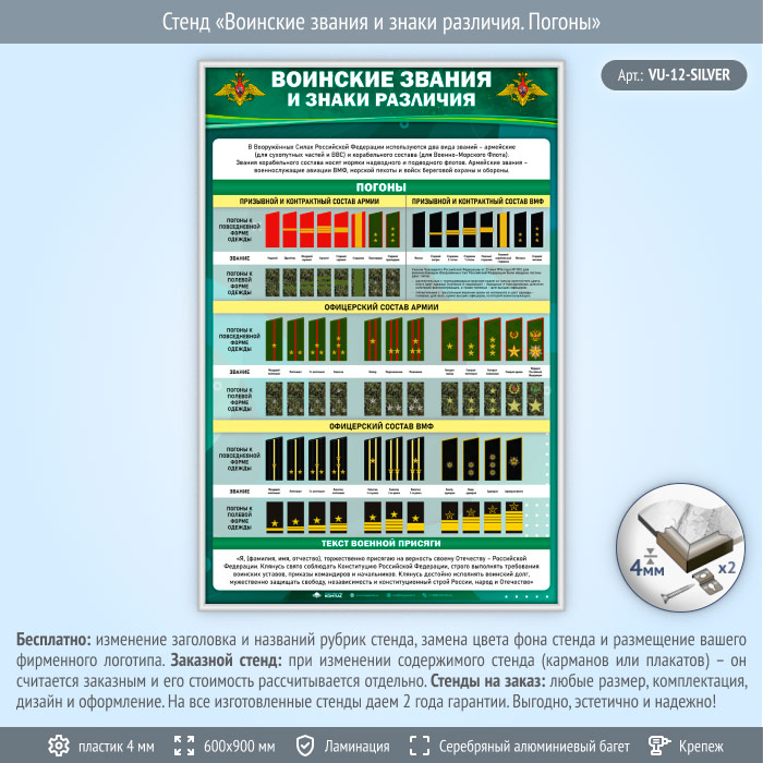 Стенд «Воинские звания и знаки различия. Погоны» (VU-12-SILVER)