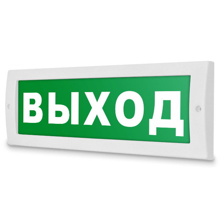 Световое табло «Выход». Плоское световое табло Молния (12В) служит для обозначения эвакуационных путей в помещениях различного назначения. Данный светоуказатель имеет минимальное энергопотребление. Световой блок светового указателя выполнен на светодиодах и не требует текущего обслуживания