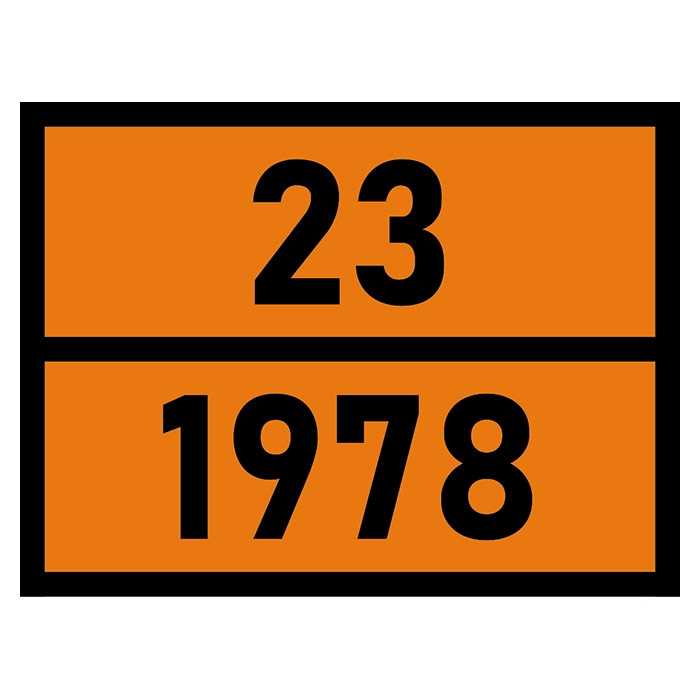 Табличка «Опасный груз 23-1978», Пропан – знак опасности оранжевого цвета с идентификационным номером, определенным ООН и указывающим на класс и вид вещества. Устанавливается на транспортное средство с целью информирования и обеспечения безопасности при перевозке опасных грузов. На автомобиле должно быть установлено две таблички: одна спереди, вторая сзади.