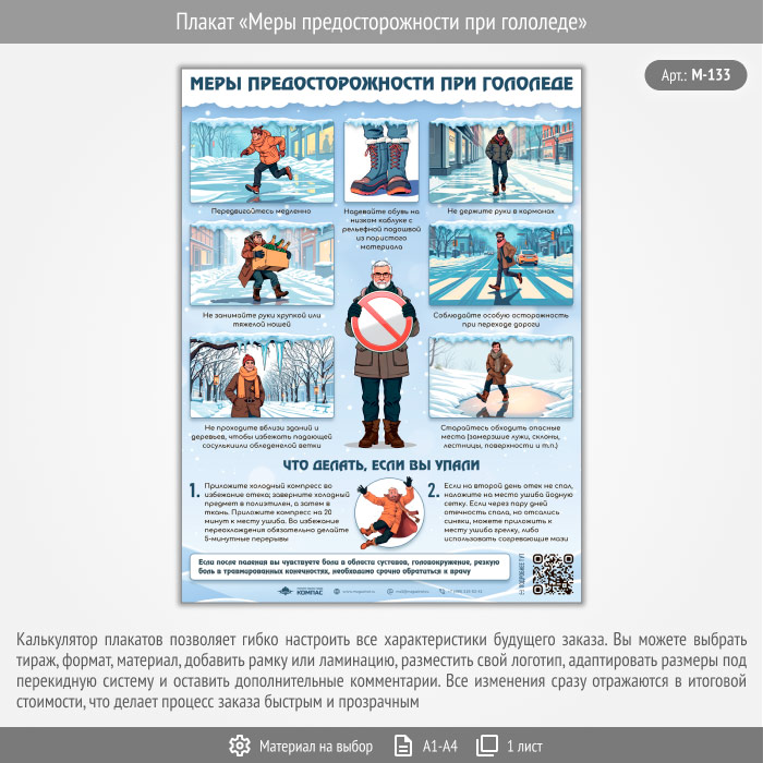 Плакат «Меры предосторожности при гололеде» с QR (М-133, 1 лист)