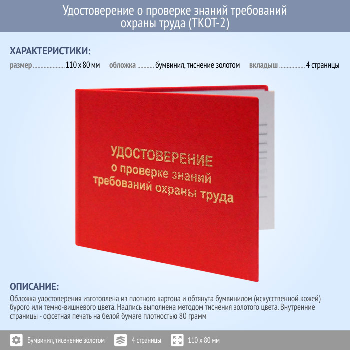 Бланк удостоверения о проверке знаний требований охраны труда (ТКОТ-2)