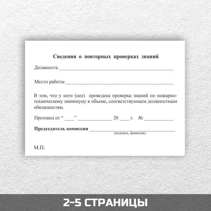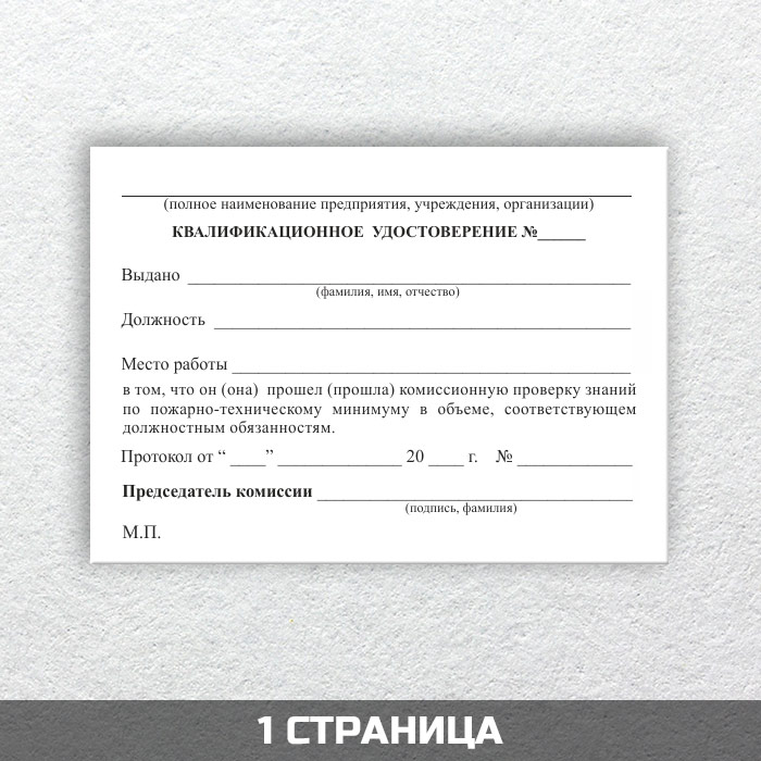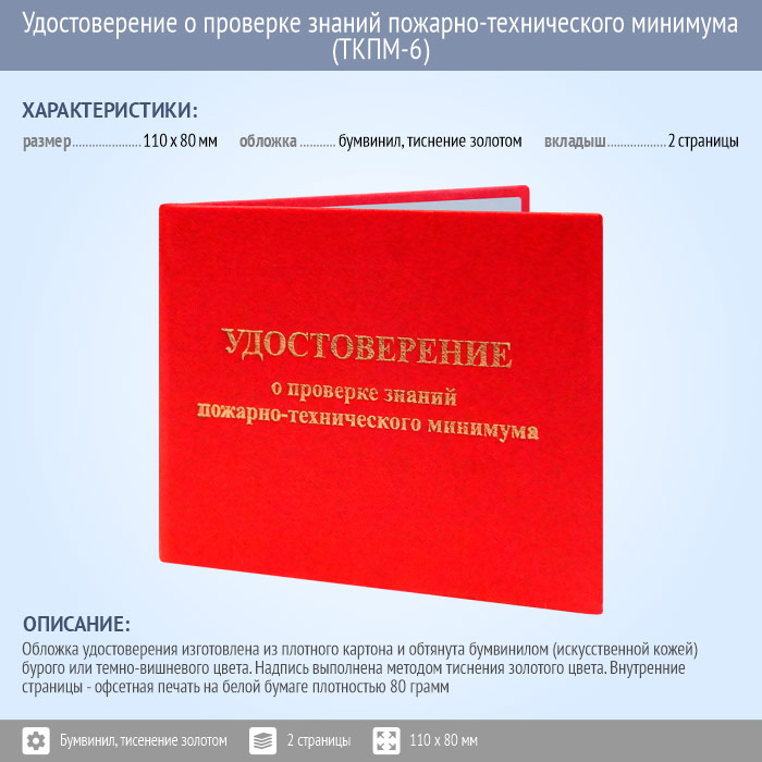 Бланк удостоверения о проверке знаний пожарно-технического минимума (ТКПМ-6)
