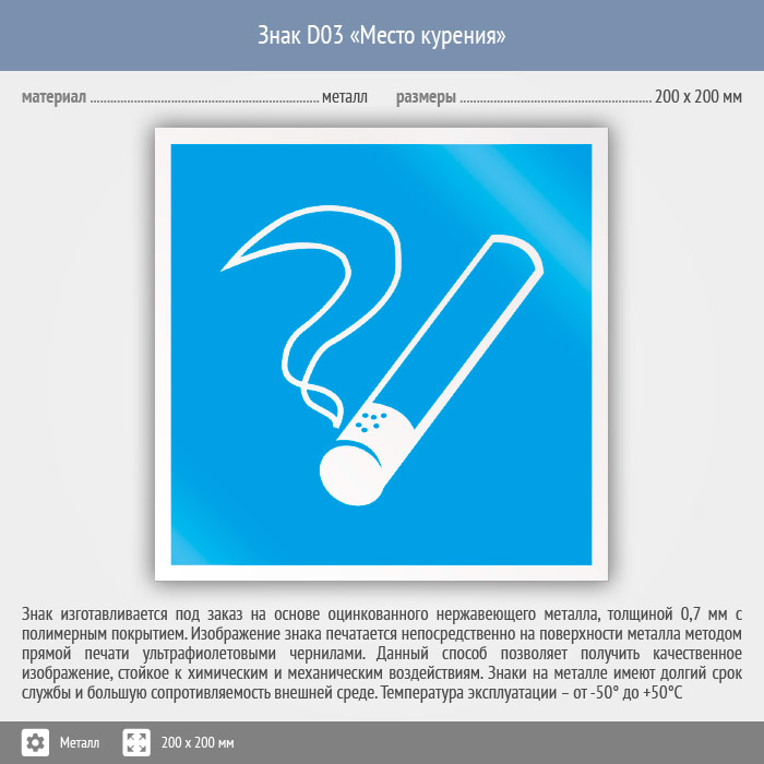 Знак D03 «Место курения» (металл, 200х200 мм)