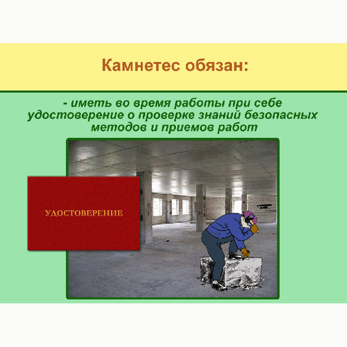 - Требования безопасности во время работы для камнетеса