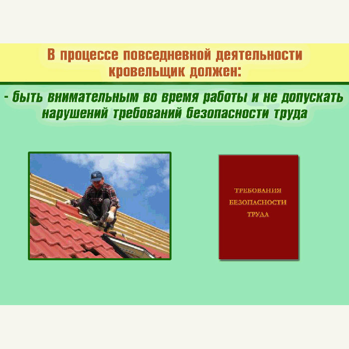 - Общие требования безопасности для кровельщика по стальным кровлям