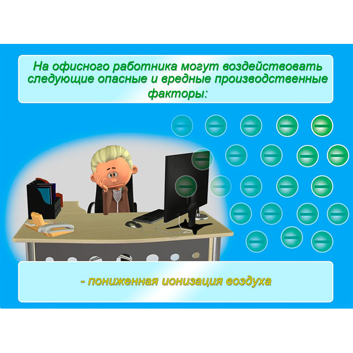 Видеоинструктаж / электронный курс по виду работ "Работа в офисе" разработан на основе соответствующих инструкций по данному виду работ и других действующих нормативных документов по охране труда по данному виду работ.