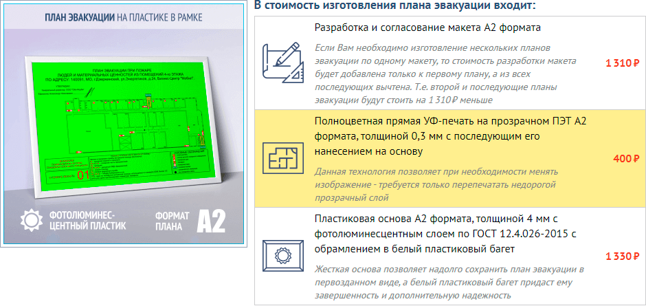 Уважаемые посетители нашего сайта! Рады сообщить вам о нашем нововведении - таблице стоимости изготовления. Теперь при заказе плана эвакуации вы сможете видеть из чего складывается его цена. Ниже немного подробнее о том, когда это может понадобиться