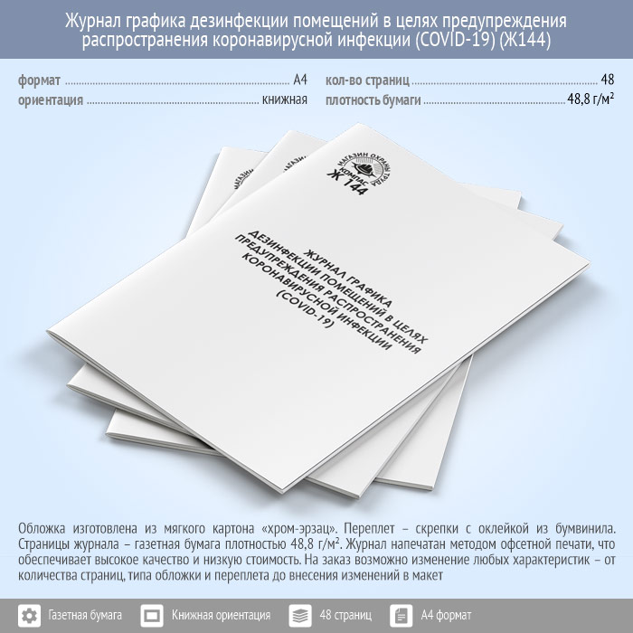 Журнал графика дезинфекции помещений в целях предупреждения распространения коронавирусной инфекции (COVID-19) (48 стр., Ж144)