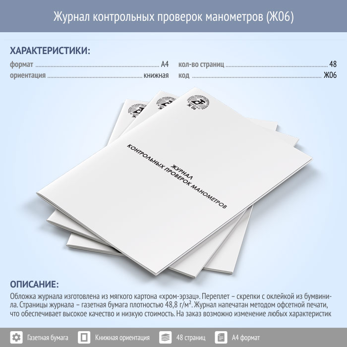 Главная Печатная продукция по охране труда Журналы по ОТ и ТБ и другие Журнал контрольных проверок манометров (КИП)