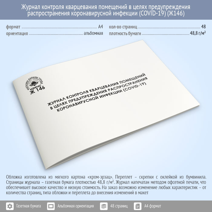 Журнал контроля кварцевания помещений в целях предупреждения распространения коронавирусной инфекции (COVID-19) (48 стр., Ж146)