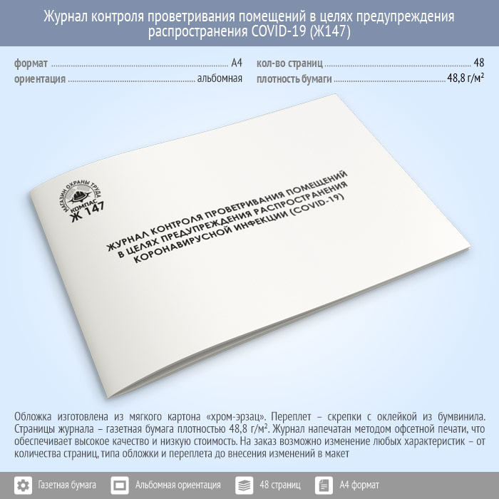 Журнал контроля проветривания помещений в целях предупреждения распространения коронавирусной инфекции (COVID-19) (48 стр., Ж147)